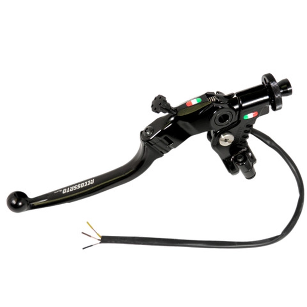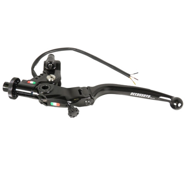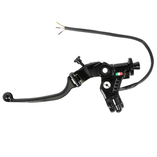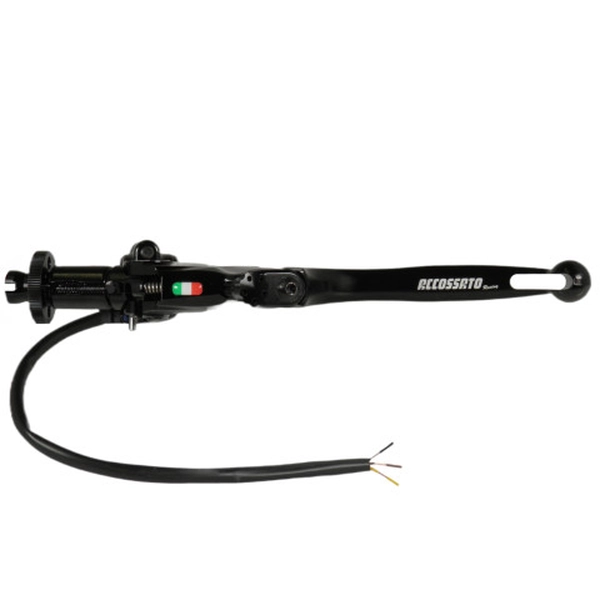 The Accossato CF018 wire clutch control with 24mm wheelbase is a unique product in its category that offers not only ‘click’ adjustment of the cable, but also an exclusive adjustment of the distance of the grip from the knob. The adjustment knob, harmonized with the color of the lever, not only adds a touch of elegance to the overall design, but also offers easy and intuitive clutch adjustment. The Black colored lever, with hole for air passage, folding for maximum versatility, is made of aluminium, machined from solid and anodized to guarantee resistance and durability over time.